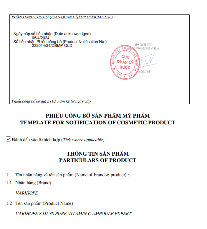 Phiếu công bố Varihope